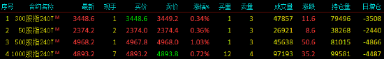 2024年7月1日,股指期货震荡上行,沪深300股指期货(IF)主力合约涨0.35%,上证50股指期货(IH)主力合约涨0.36%,中证500股指期货(IC)主力合约涨1.03%,中证1000股指期货(IM)主力合约涨0.72%。